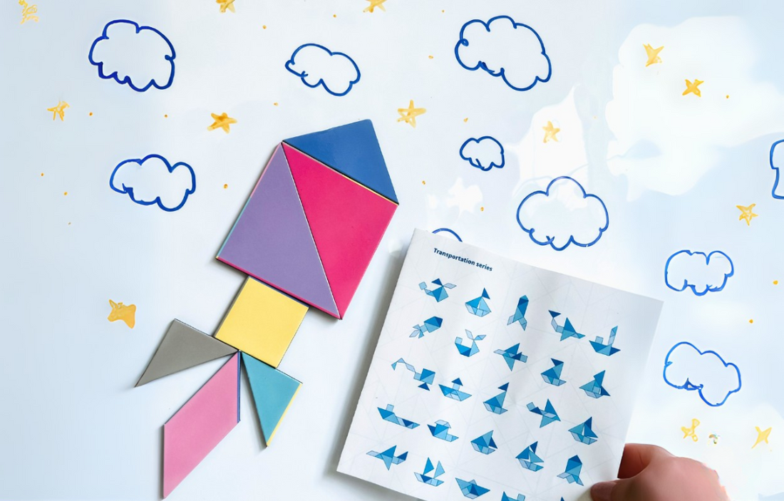 2-in-1 Design: A magnetic tangram puzzle and reusable chalkboard in one — build, draw, and erase endlessly.